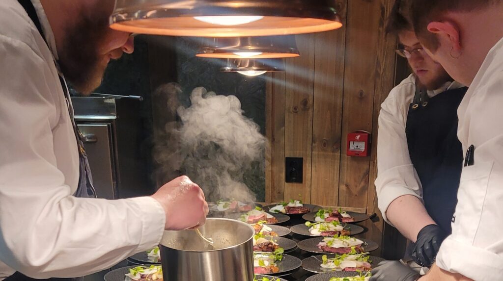 The menu celebrates authentic Nordic cuisine, crafted from seasonal, locally sourced ingredients from the fjord, forests, and mountains. From carefully prepared lunch plates to elegant dinners with wine pairings, every dish reflects the purity and depth of west Norway’s flavours.